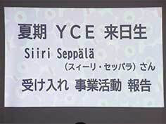 母国のフィンランドやSiiri Seppäläさんの紹介の後、写真と映像で、緊張した名古屋駅での対面から、ウエルカムパーティー、市長表敬訪問など、日本での生活や活動について報告がありました。
