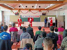 会長、担当委員長が参加して、助成金を贈呈しました。また、サンタクロースに扮して、子どもたちにプレゼントを渡しました。