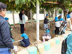 小鈴谷保育園の年長組の園児と共同で作業しました。